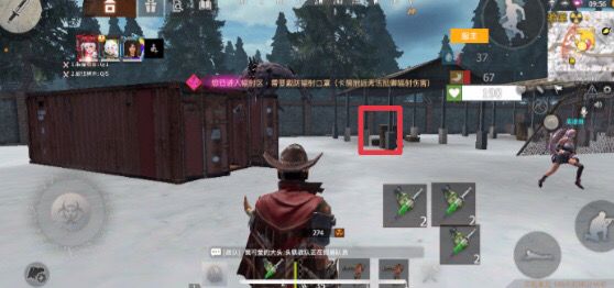 只需要先吸变异体仇恨,然后跑到红方框那里,变异体就会往回跑从而导致被集装箱卡住,然后就可以拿着砍刀砍砍砍了。