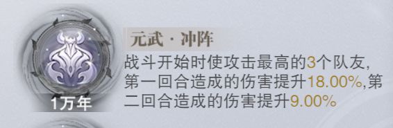 ② 至于【元武/冲阵】和【玄鹿/鹿鸣】的分配就没有太多的区别了,一个是开局增伤衰减,一个是叠加增伤机制,两者相辅相成,能够让队伍的C位输出能力平滑过渡。