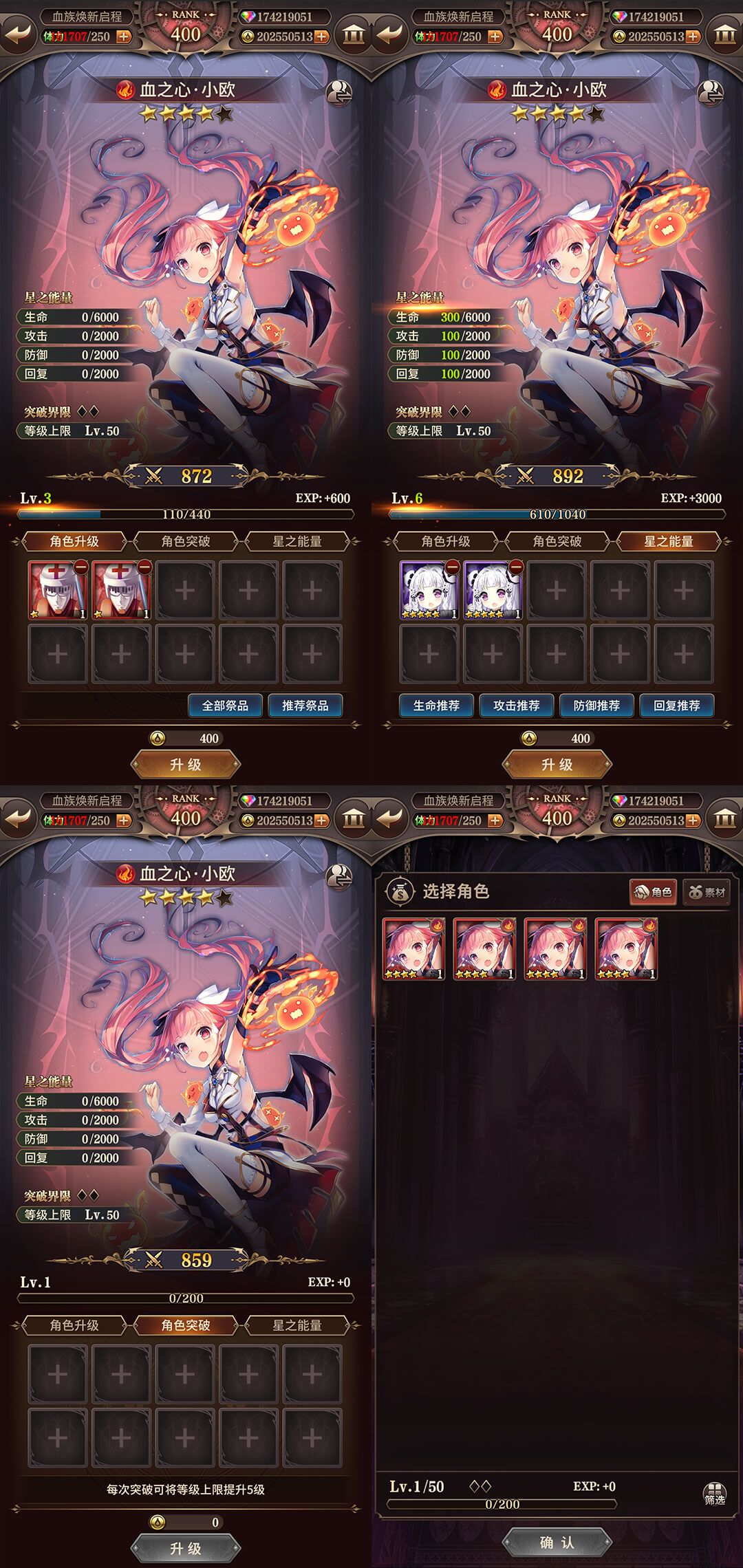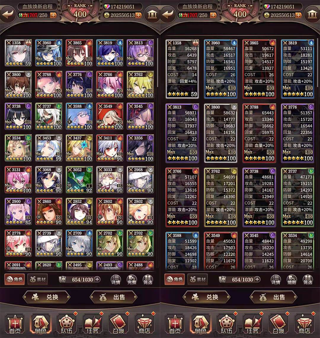 另外,还加入了详情查看功能,可以在背包中直接查看及对比各个角色的培养情况和属性状态了。新增了半身像的展示效果,可以在背包中切换头像和半身像的显示。