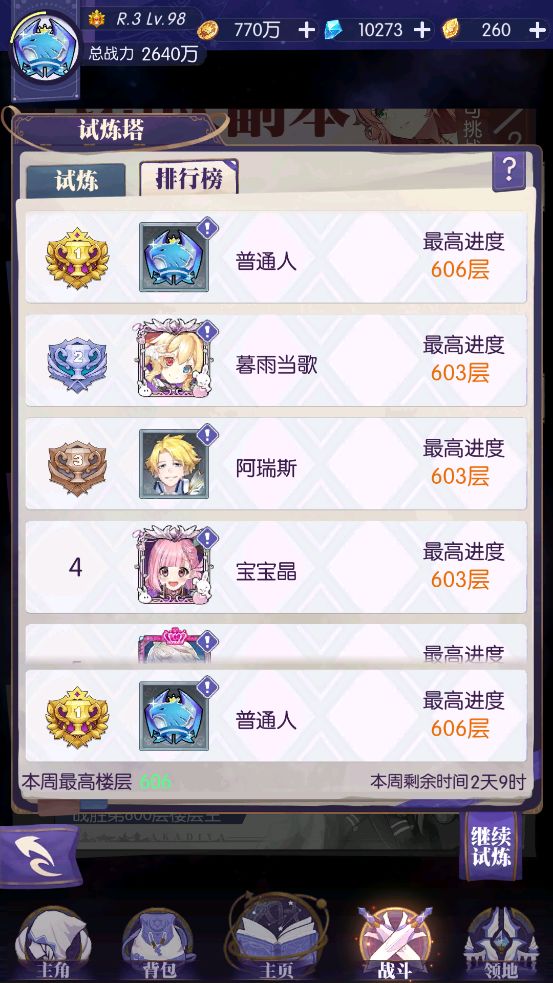 吐槽一句,真是不可思议,靠大佬磨到800层之后居然自己打到了1000层,打完800在战力莫名其妙翻了倍。。