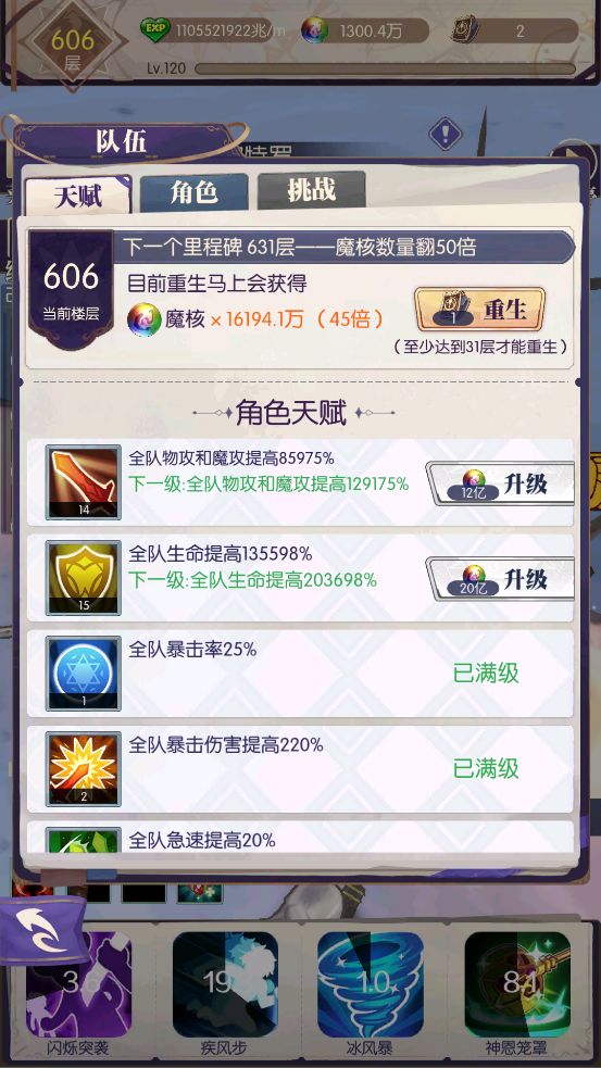 10.补充,有时候重生时算下魔核够不够升级,比如这周爬591,第一次二次重生加起来的魔核都不够升级,所以就不用费力气爬了,退出重进后到最高层数后直接重生,节省了很大精力