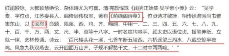 经过搜索,他们发现清朝有位文人吴学素曾以“闺怨”为题作诗《荫绿阁诗草》,诗中包含了大量数字,而这些数字极有可能就是白小冉在寻找的谜底。