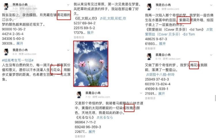 小棉花是《古镜记》制作组胖布丁工作室的创始人,可能和谜题关系不大。所以他们翻遍了白小冉帐号上的动态,发现其中与花有关的有很多条,但要符合“五月的花”这个条件,只有紫藤花和玫瑰这两种花是在五月开放。但怎么利用这个线索,再次难住了这一群人。