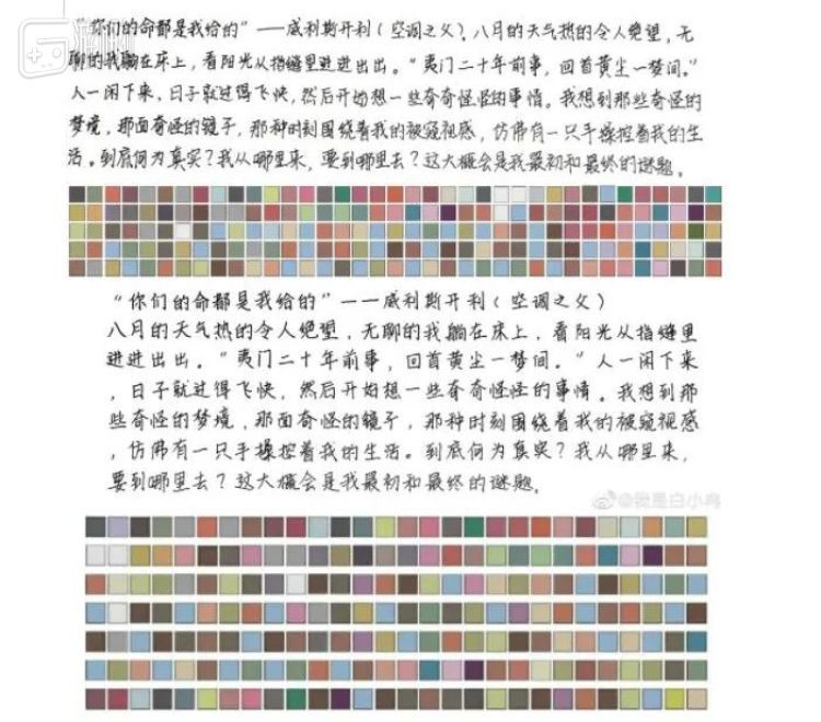 好在不久后,他们通过对比“我是白小冉”B站和微博账号上的异同,发现了破局之处。这两个账号的主页背景都是一张马赛克图片,但根据平台不同而有所区别,都正好能对应上了白小冉最新一条动态中手写文字的不同排版。