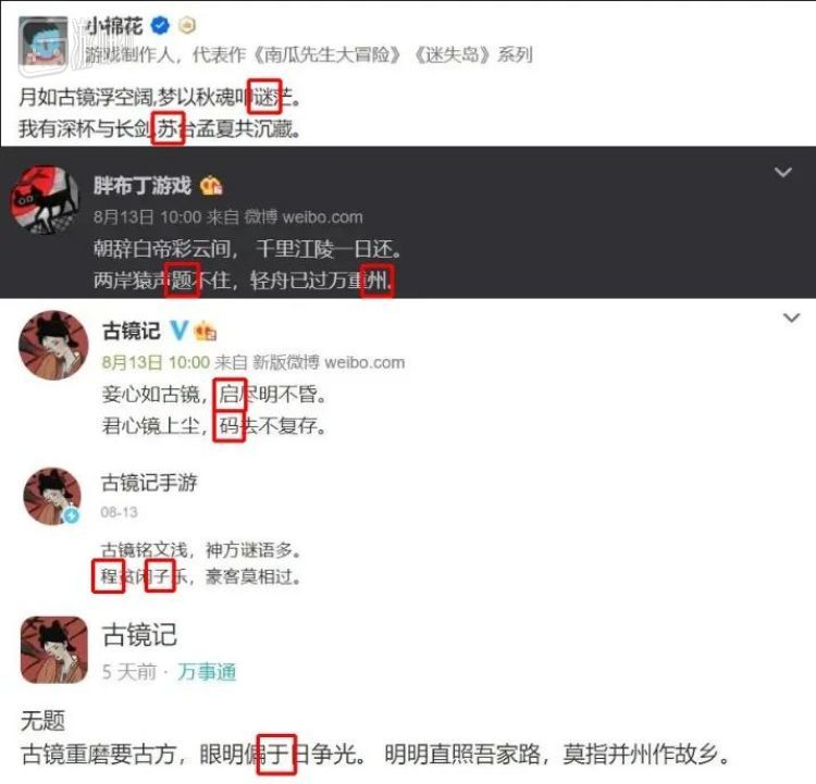 在经历最后一次长时间的卡关后,大家一遍遍地重新翻看白小冉的动态,终于想起最初找到“我是白小冉”帐号时,那段手写文字的最后写着:“这大概会是我最初和最终的谜题。”而那条动态的第二张配图,一首叫做《闺怨》的诗他们一直没用上。