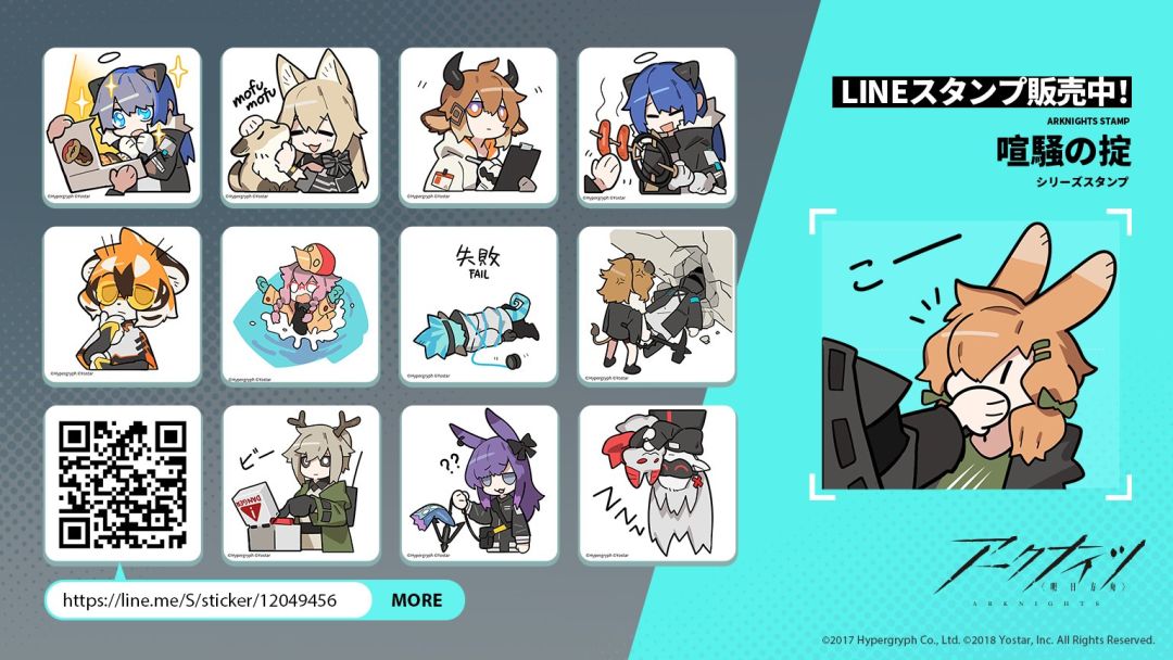 庆祝《アークナイツ[明日方舟]》新活动「喧騷の掟」(喧闹法则)上线,官方制作了新表情包,现已同步上线LINE与官网,欢迎下载使用。