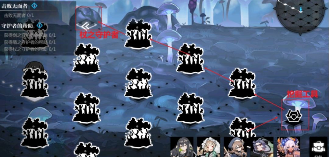 2. 接着上图走,得到挖掘工具,注:杖之守护者的转盘要选“封”字,转到大树图案的话,就传送到密林初始点,再重新走过去转一遍直至成功。