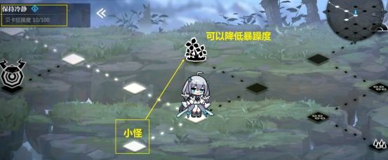 1.每打一次小怪,会上升10点暴躁度,旁边都会有草药的,可以降低10点暴躁度