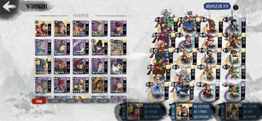 战法:商店里蓝玉买的基本都是二级 前排几个加武将血和加士兵血的升到了三级