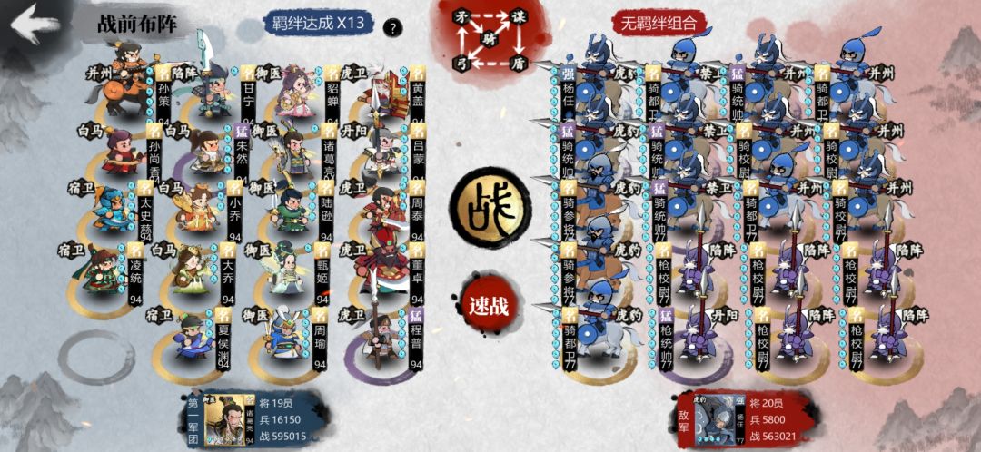 二队:我骑兵都用的虎豹 西凉没试过 精英关卡前排盾 骑 枪 都有 西凉遇到第一排丹阳枪第二排陷阵前排估计比较难受 打盾前排有优势