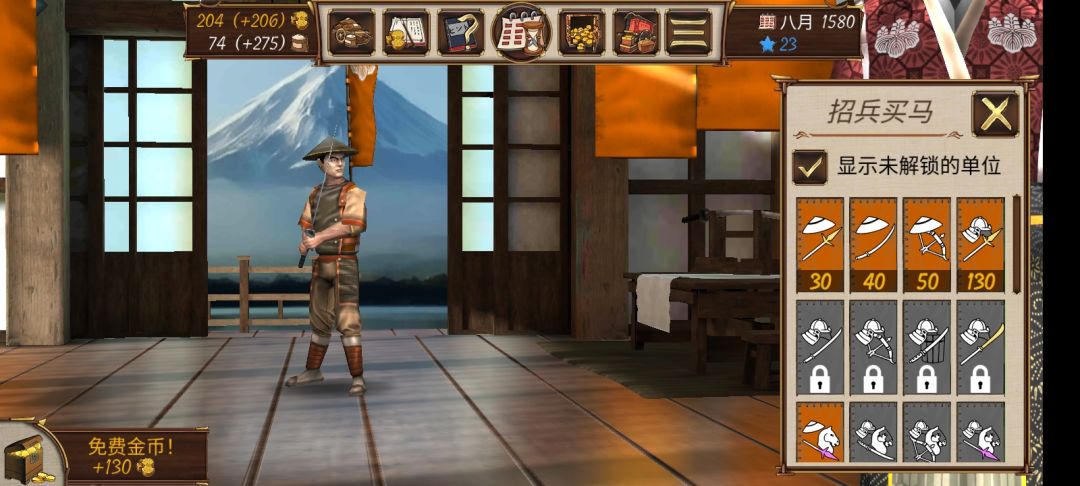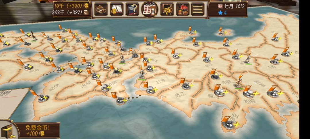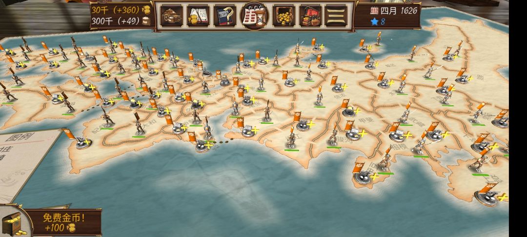 一开始的我,身为日本这个弹丸之地的唯一的老大,自然要励精图治,所以我保留了仅有的几个足轻和几个50块钱的将领。