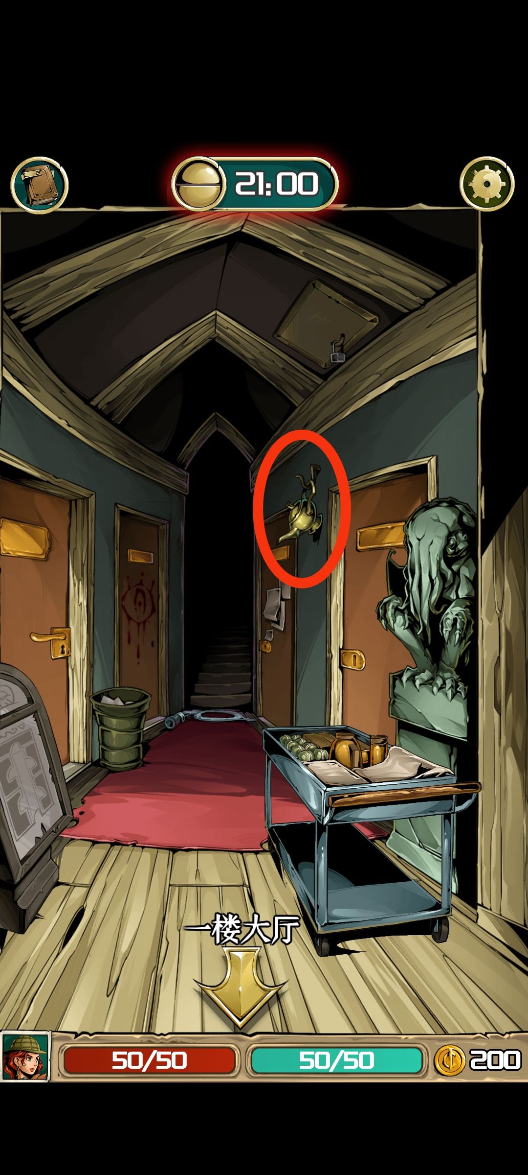 前期发展选择,众所周知理智边界技能很重要,首先我们开局的时候相当于可以选两个技能,一个是大厅大象头,餐厅蜂蜜酒,走廊神灯这三个任意点两个就可以获得一个技能(这里一般我选大象头和蜂蜜酒)