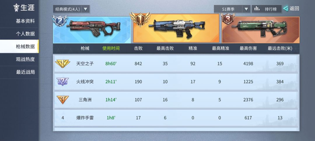瞧瞧咱挂哥的光辉战绩,200多KD,这是高手啊!(눈_눈)