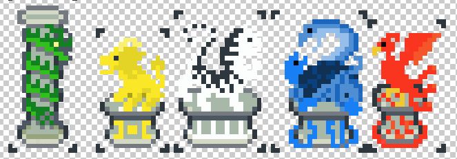 阵法样子(雕像)以青龙白虎朱雀玄武麒麟来呈现。