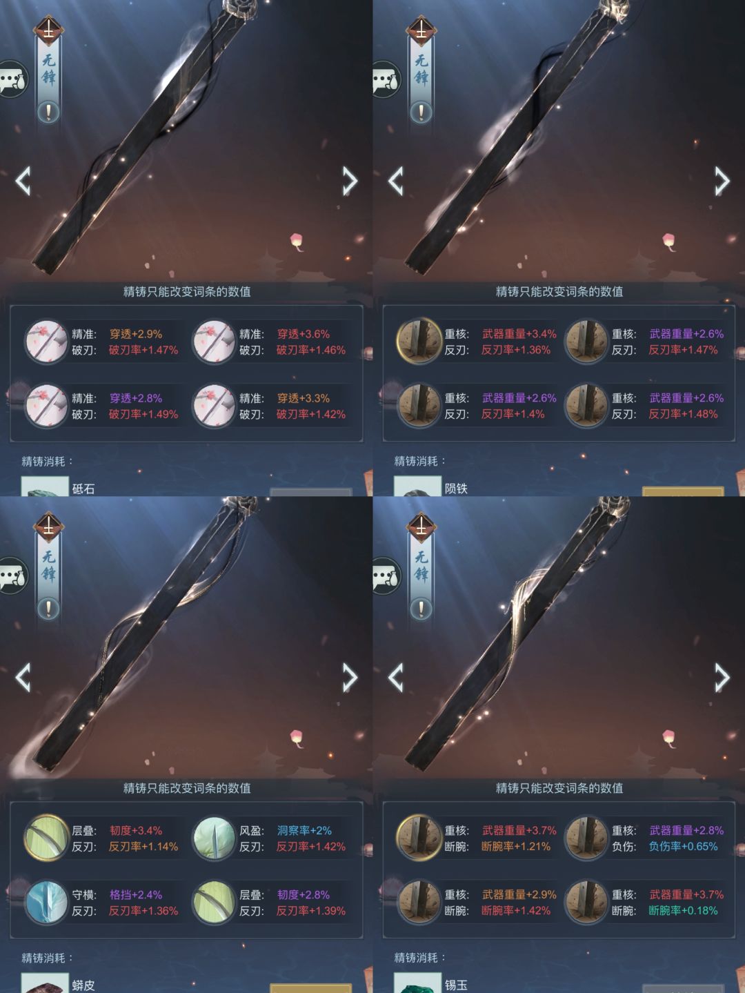 无锋严格来说是一把防守之剑,目前我的打法有两个洗练方法分别是: