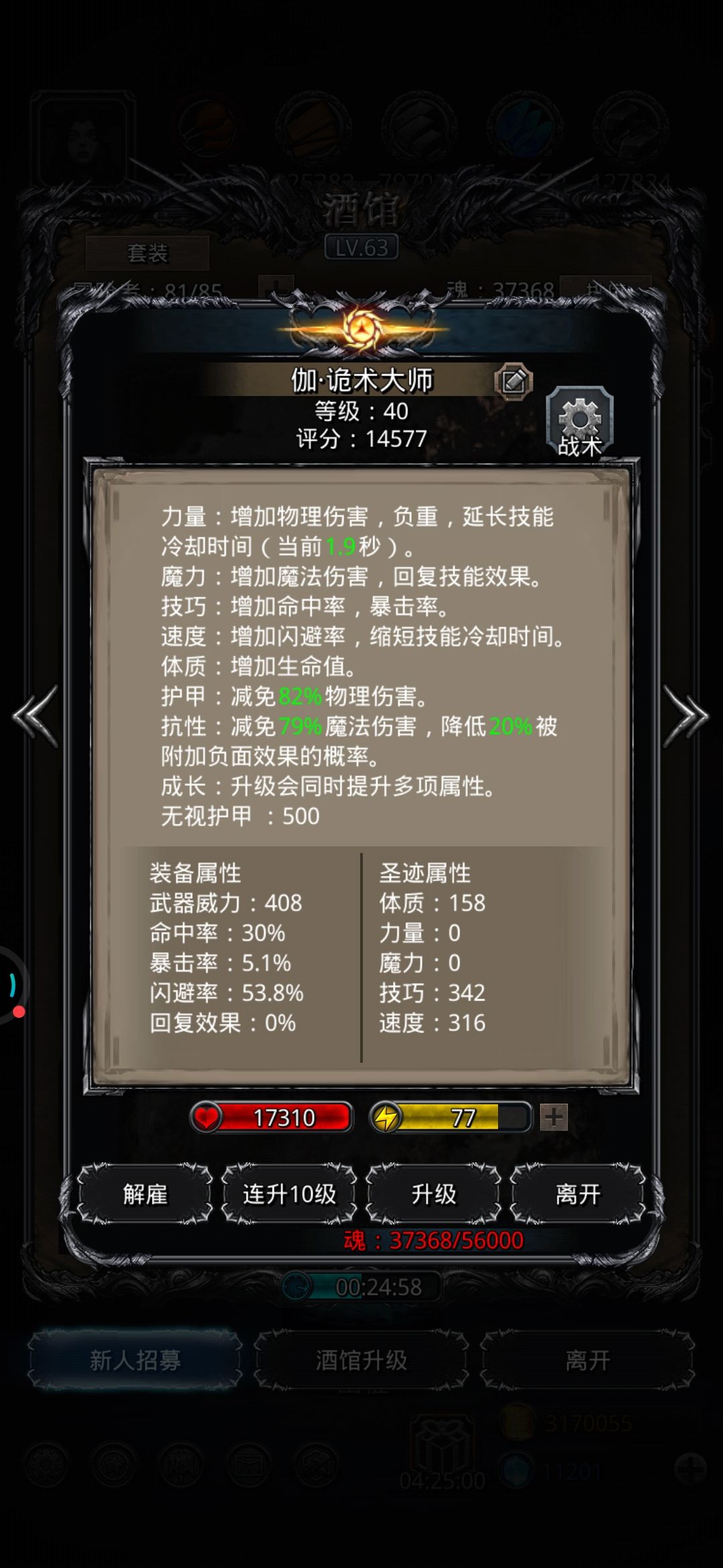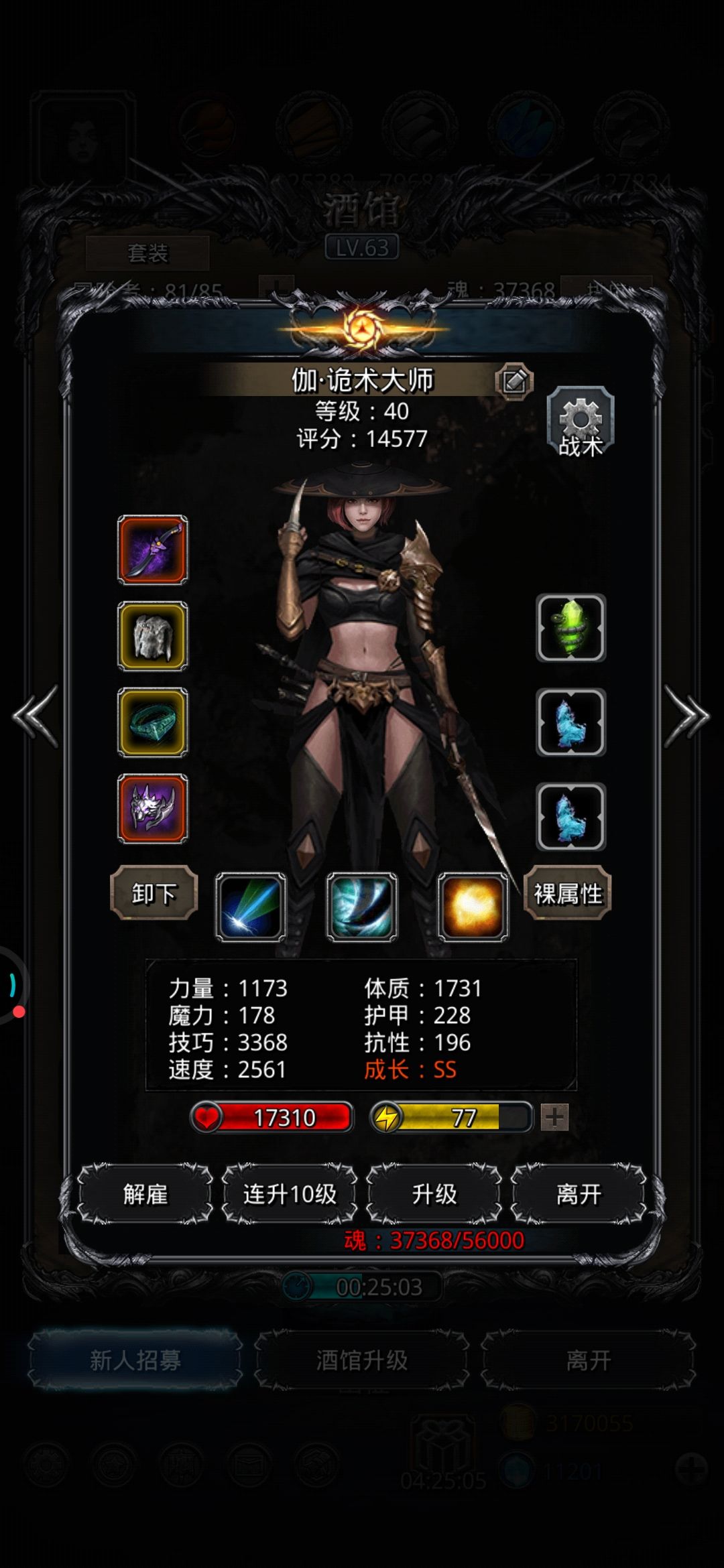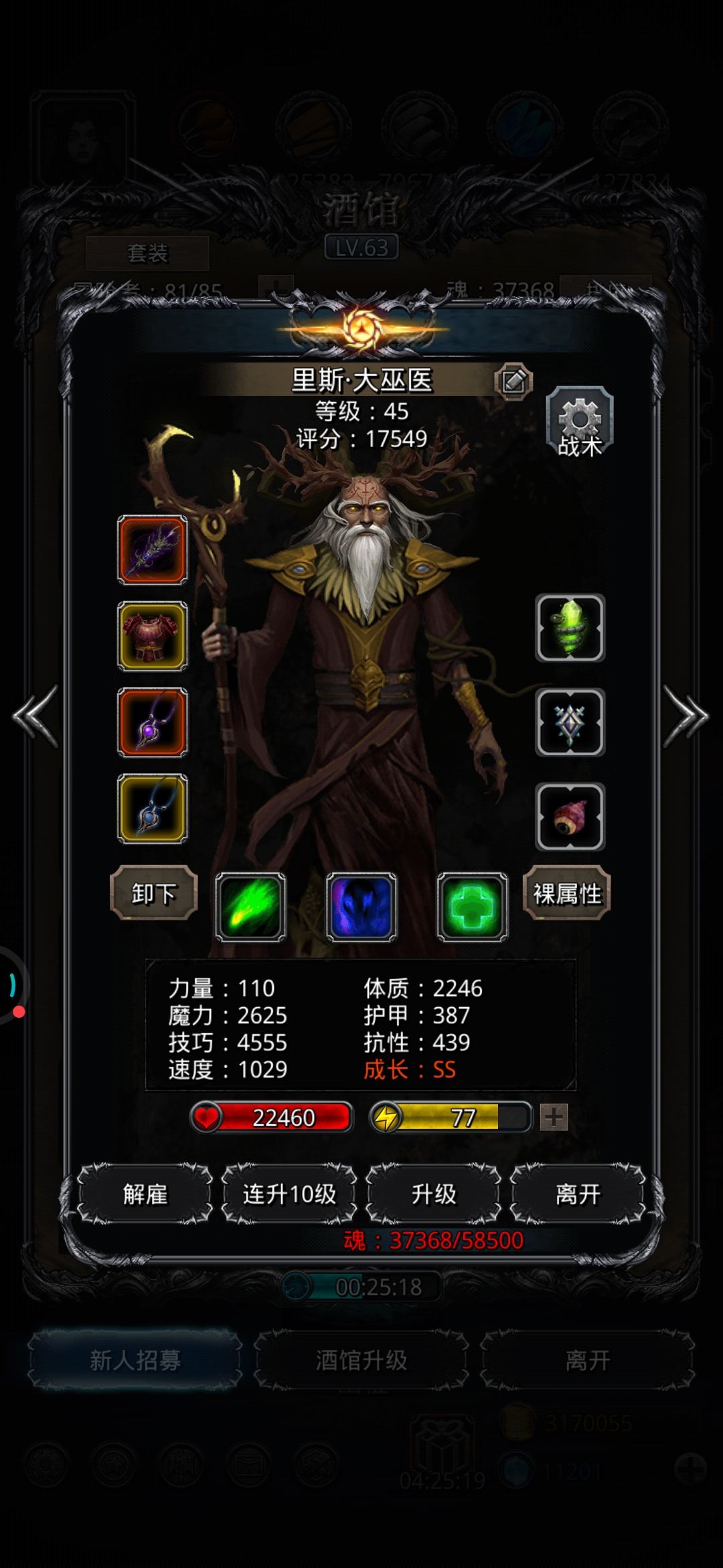 这个思路的重点是,诡术技巧减到0,命中率低很多,生命流失buff中的概率就低了,队伍能撑两分钟以上。前期生命流失少,巫医可以多开自动,帮助输出。
