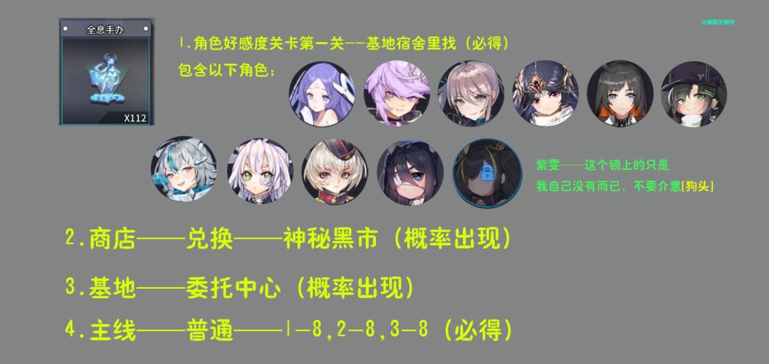 听说新人们在加入同盟以后,总会在每日同盟任务要求收集的物品上犯愁,不知道是什么东西,也不知道在哪里收集。下面几张图是帮助新人们更快找到任务要求物品的攻略图。😗