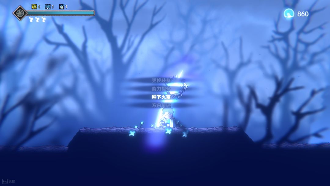 而如果你在地图中发现了火苗这个道具的话,就可以将它带回方舟处进行种植,当种植了火苗后,人物的回复血量次数上限也会随之提高,是个非常实用的道具!