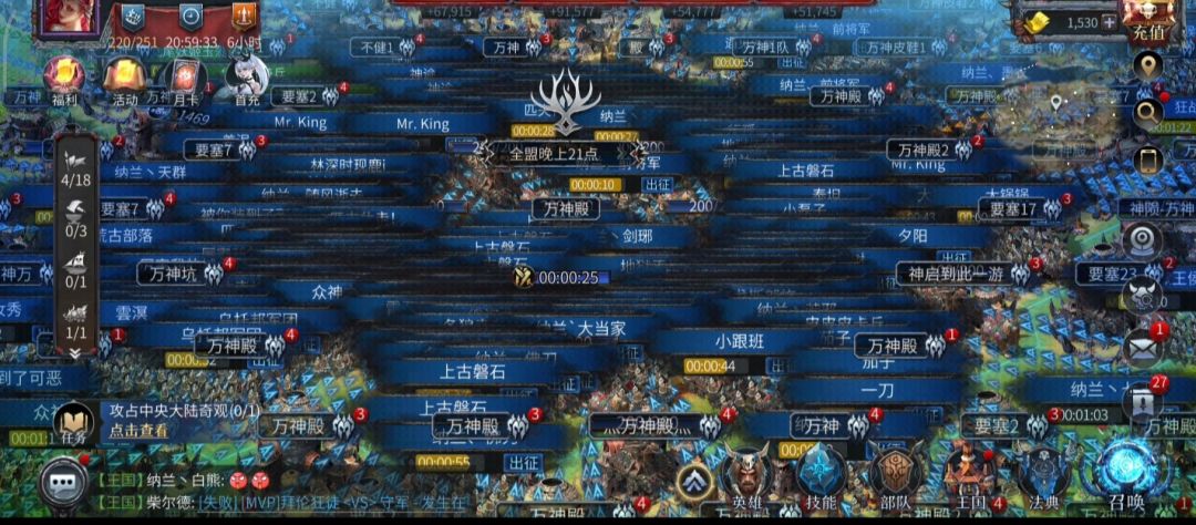 纳兰丶洪荒阁联盟集结全盟攻陷万神殿,盟主在中午就让大家把队伍调动过来,主力与拆迁和战车铺满了整个万神殿附近田地数十格之广
