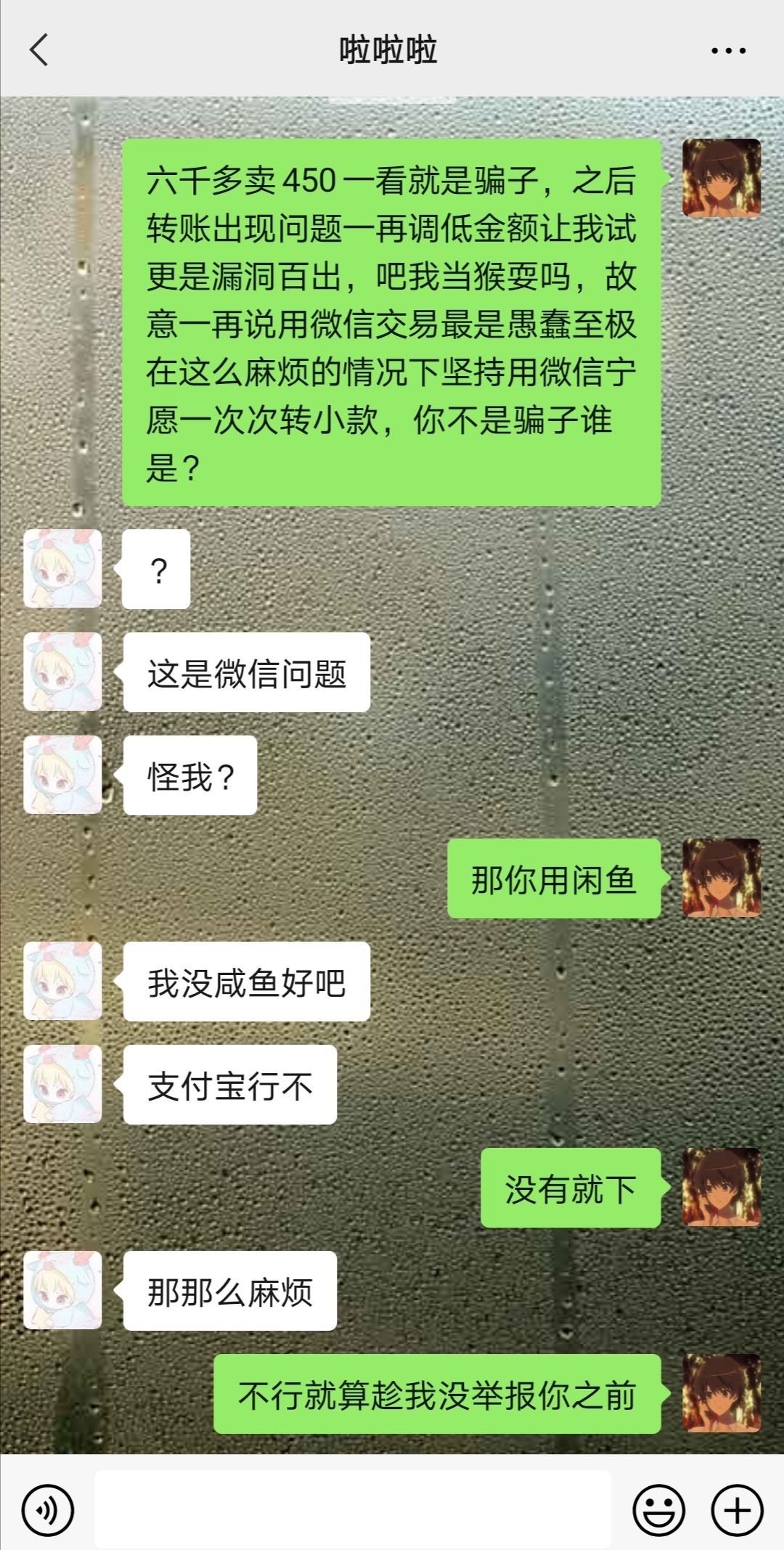 笑死!遇到了卖号骗子几千的号卖450还说之前有人出800都不卖,公布微信聊天记录,此人游ID:152153831