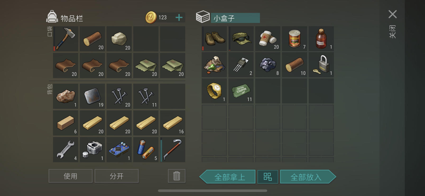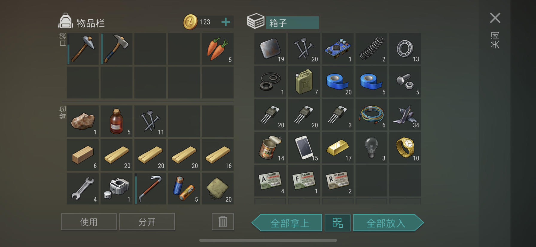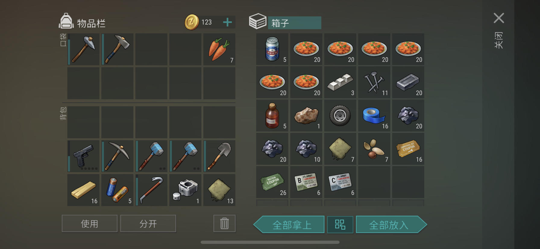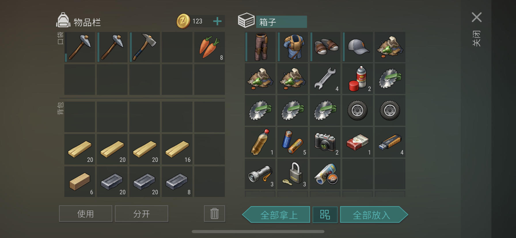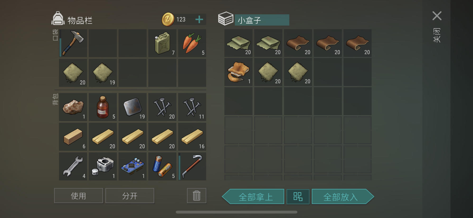 PS:两个木工台、工作台都是空的;熔炉1有7铁棒+12铁矿石,熔炉2有2铝线圈
