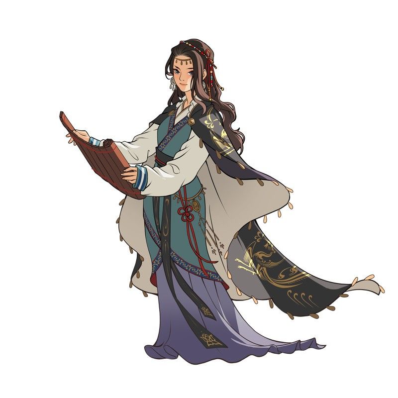 另外看到有很多玩家猜是王昭君,的确昭君也是知名度极高的出塞女子,但是我们的游戏在角色设计上是都不会过于偏离大众的认知,昭君的传统形象应该是红袍貂绒犹抱琵琶,上面这个造型显然不是,俨然是一名文官使节的装束,既与昭君形象相差甚远,而且也不是一般贵族公主的形象,加上与西域相关的知名女性就不多,稍微百度一下“西汉+西域+女性”,再用排除法就能得出答案。