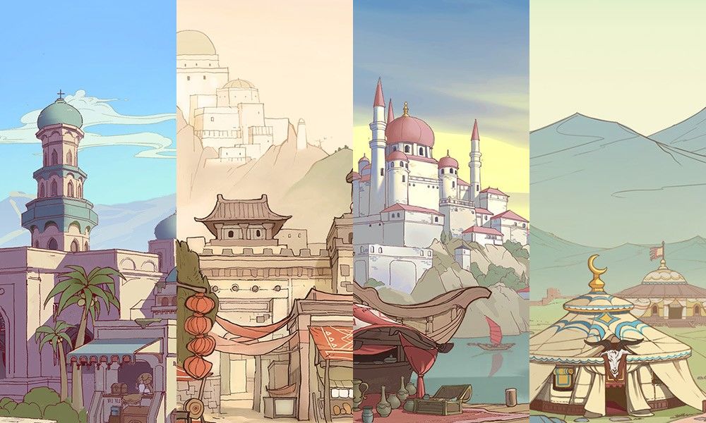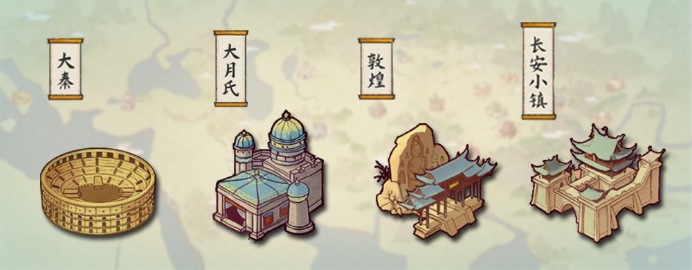 你知道丝绸之路有多长呢?在游戏中我们可是还原了完整的丝路地图哦,从玩家经营的长安小镇出发,沿河西走廊方向,跨过中亚、阿拉伯和巴尔干地区,几乎就是横跨了亚欧大陆,最终抵达地中海的罗马帝国。