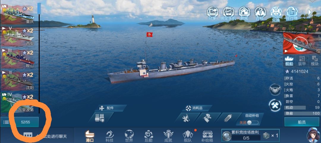 圈起来的地方左边的数字是你目前拥有舰船数,而右边的数字就是你目前的船位数。