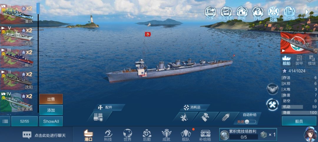 点“出售”可以出售目前你选定的舰船,出售可得的金币为购买所需金币的50%。