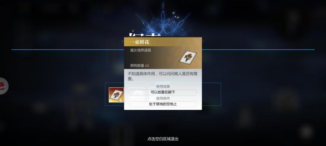 闯关中有几率碰到石碑(此处有一朵花,没什么特别的),站在石碑处使用物品拾取,会获得一朵花