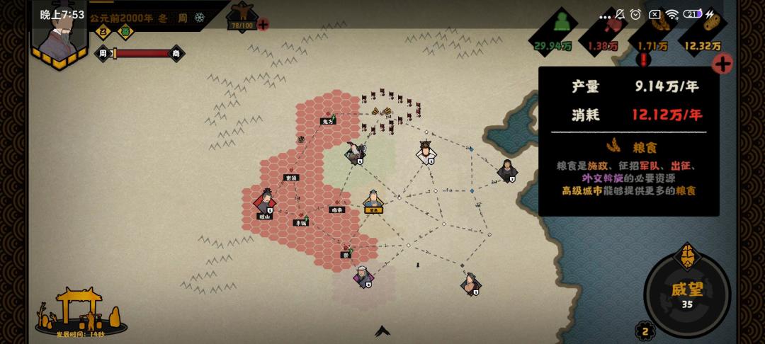 黄帝剧本主要需要注意兵种的克制 ,在这一剧本中 ,可以不用考虑民心,军心,甚至腐败问题 ,因为是新手剧本 所以通关起来相对容易 。时间到了就可以进行祭祀祭祀,每一阶段的最后几次,都会获得一张一次性的技能卡牌,非常好用 。只要注意好兵种克制关系 便可以非常容易的通关。唯一需要注意的是尽量在前期灭掉炎帝,蚩尤,黄帝这类比较大的部落。