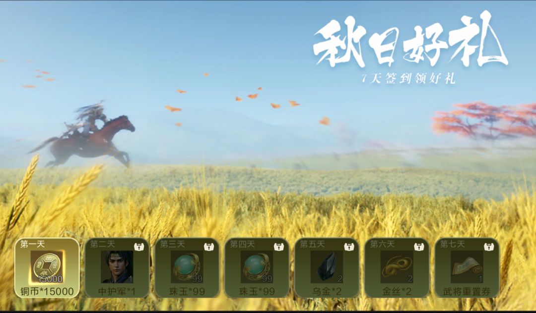 秋风送爽,金秋将至!纵然浩荡天下群雄纷争,鸿图依旧与你相约金秋。登录签到即送好礼,领略秋高气爽的独特美景。