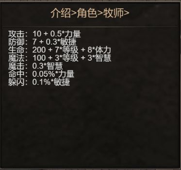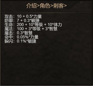 角色属性:目前游戏内职业分为战士,刺客,牧师,法师四个职业,每个角色的属性成长如下: