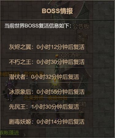 世界boss的刷新时间和位置可在兰达尔公告板处查看。