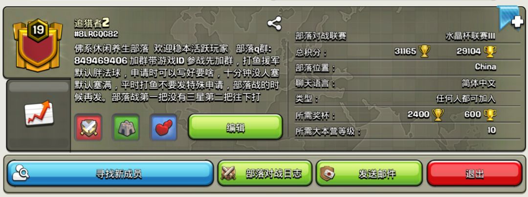 平时部落战想不想打挂牌就行,没有严苛的要求,但不希望有长期挂红的行为。玩个游戏不用像上班打卡一样!就是这次联赛想凑几个会玩点的大佬认真搞搞,打15人联赛!有想法的直接进部落,人满了就进群说!
