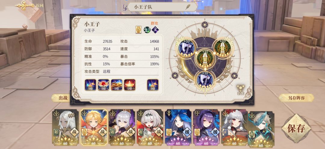 首先小王子队就是小王子这个核心,练度一定要高,契印一定要过得去,废话不说上图。