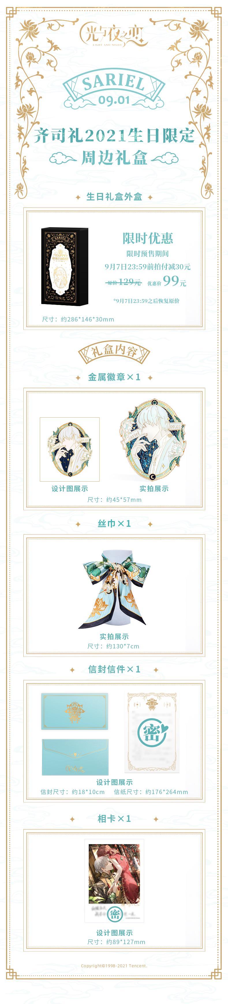◆【齐司礼生日礼盒】9月1日中午12:00-9月7日23:59限时99元抢先购,9月7日之后恢复原价129元