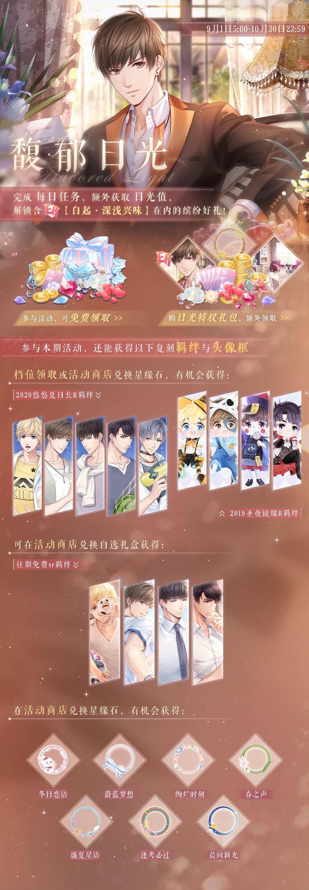 *为保证所有时间参与馥郁日光活动的制作人收益一致,日光特权的购买将不会计入任何限时累计充值活动中;长期充值活动不受影响,充值金额将照常计入。