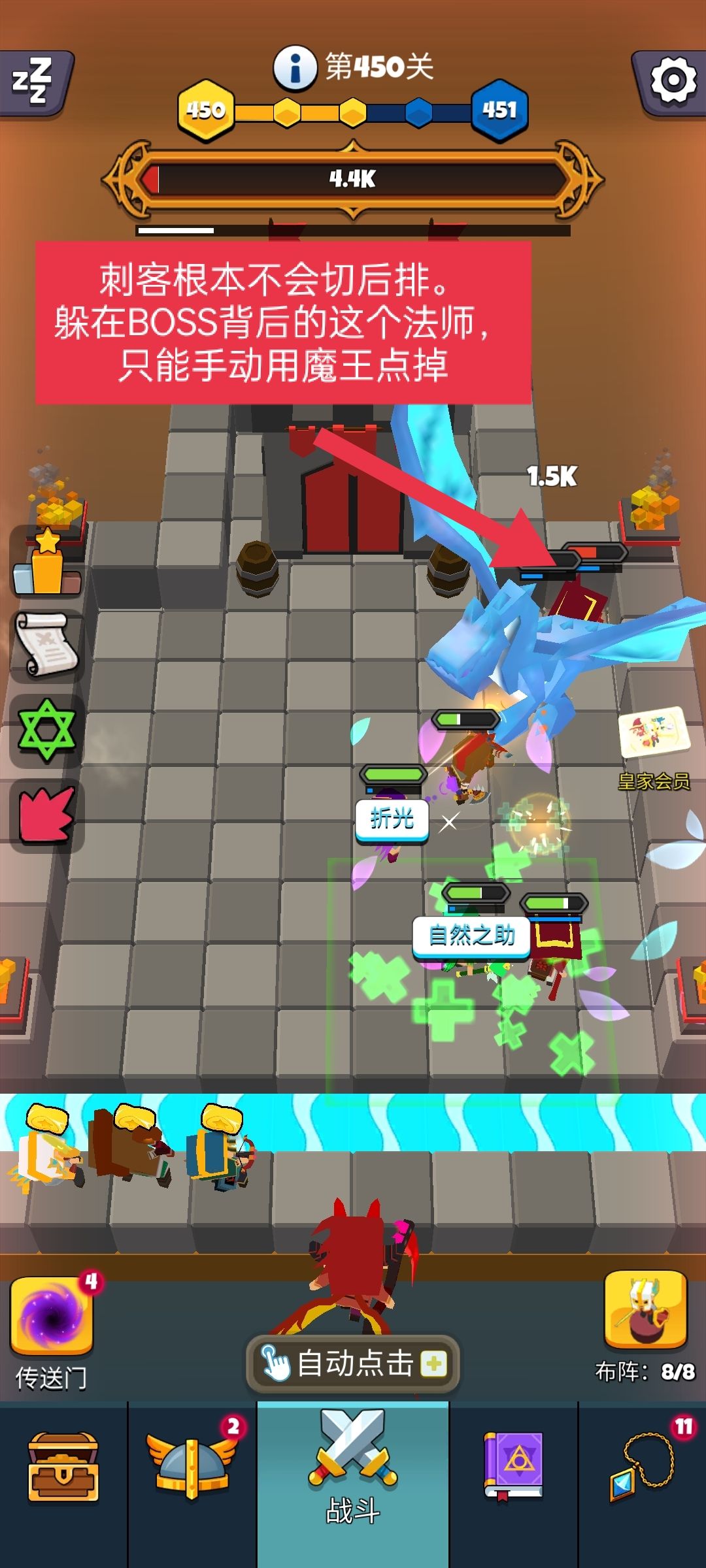 ● 图4:魔王攻击不是随机的,是指向性的,切后排比刺客靠谱