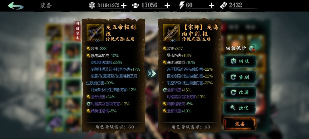 下面是测试链子和属性,没有龙体的时候。伤害分别是629w,961w。