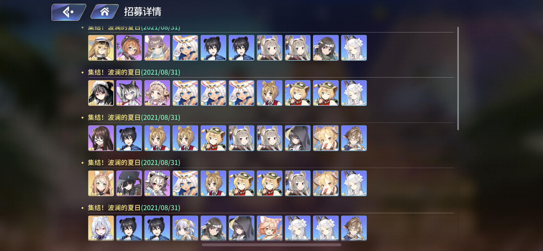 这是100连的截图,歪了5次。