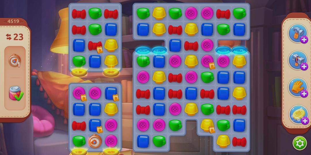 这就是带有装饰票的游戏元素,只要每关多收集点带有装饰票的元素就可以快速翻新房间了,怎么样更多收集装饰票呢?我来告诉大家吧!