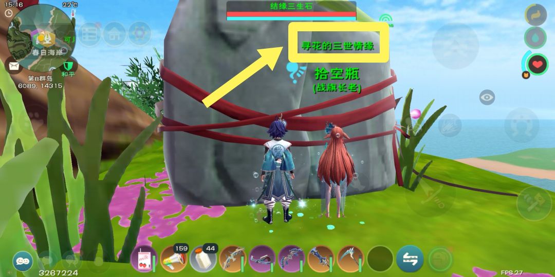 结缘“三世情缘”关系需要通过三生石,三生石的位置在三生石浮岛皮肤巨树下方(其他玩家家园中的三生石也可以使用)