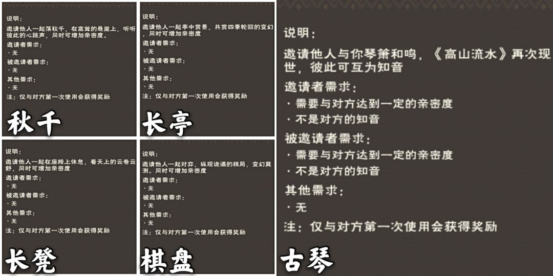 知音:与对方亲密值达到16使用古琴后即结缘为“知音”关系