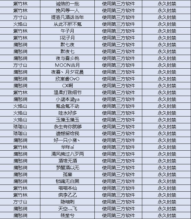本帖将用于各位上仙举报公屏不当言论、使用第三方软件(包括但不限于除游戏安装包外的脚本、外挂、加速器、美化包等)、卡BUG等违规游戏行为,我们将对举报内容进行核实,并视情况给予禁言1天-永久禁言、封禁角色、封禁账号等惩罚。