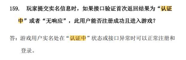 2、近期有迁户口或更换身份证的玩家(比如考上大学、户口迁移到大学所在地了等情况),实名认证有可能会延迟。(下图为版署后台的文档截图)