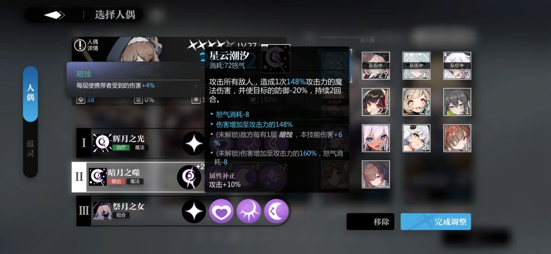 我也新弄了一队 雷队在前几回合的爆发确实是最高的不过魔法队在多回合的上限是更好的 如果后面有几百万血boss需要20回合内打完的话可能魔法队会更优秀一点 毕竟暗蚀层数可以一直叠