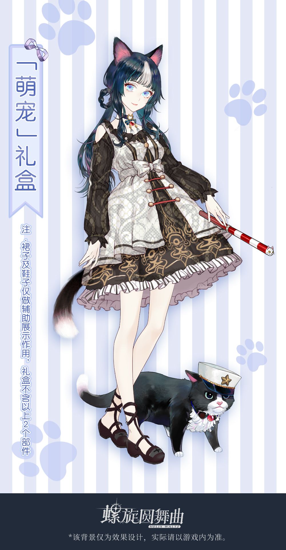 「萌宠返场礼盒」价值18元,内含部件「绒绒猫耳」「苍青白羽」「猫猫出警」「无暇猫瞳」「毛绒猫尾」「猫猫巡逻官」,钻石×180,限购1个。