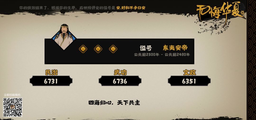 这两张我是为了收集成就,时间推的很长的。通过比对可以看出,第2张图的民治和文政都比第1张图高,但是武功却很低。原因是因为我的第2张图是民心93,军心91,腐败十几,民生和政治科技大都升满了,但是军事科技加大幅度加强消耗,所以没大点。通过这个对比可以看出,科技也是影响评分的因素。