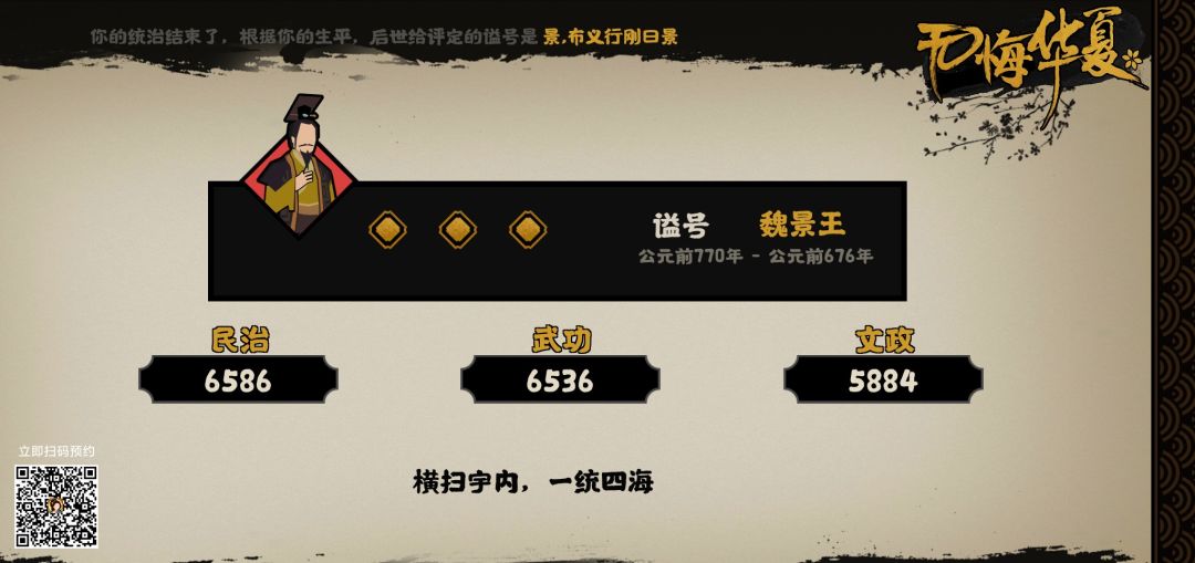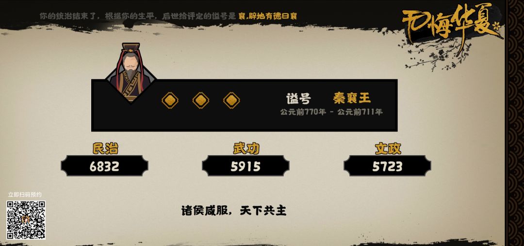 这张图当初吴起有不能招募的bug,我去试验除了在地图上看到的义渠招募吴起外,别的国家能否招募吴起。结果没想到最后三星了。这个结局科技升的并不算太多,但最终三星,我判断是因为这个结局民心军心腐败,属性相对较高的原因。
